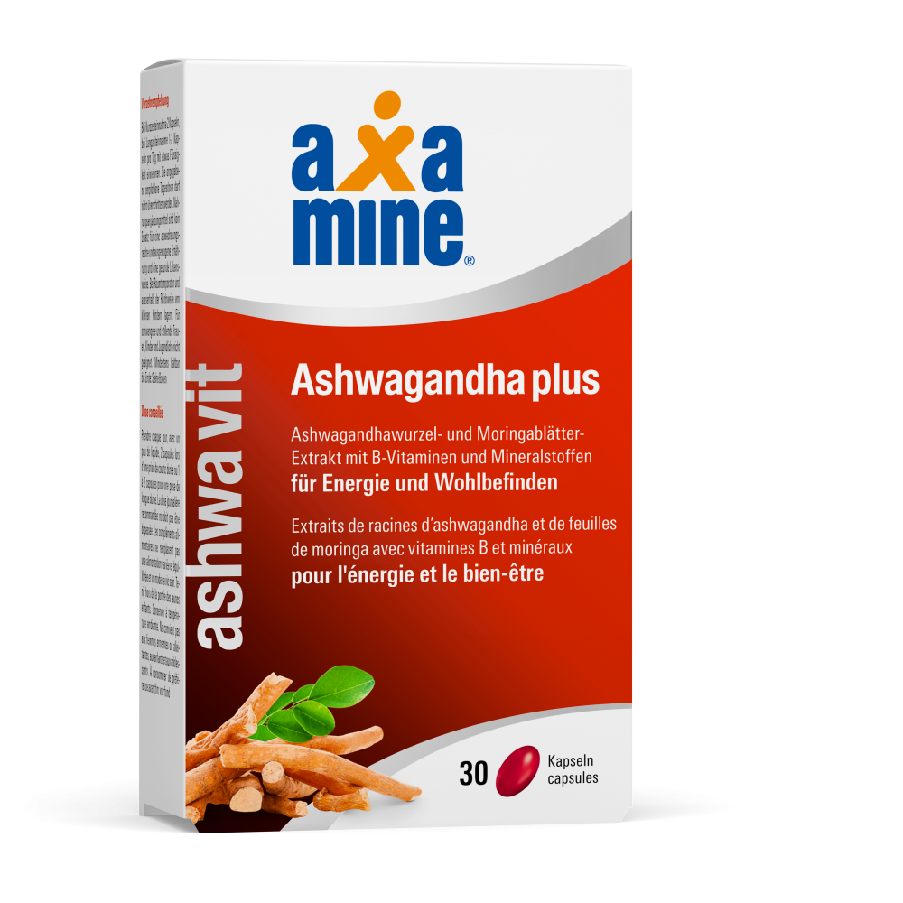 Rapsöl, Ashwagandhawurzel-Extrakt 27,2% (enthält Milch), Gelatine, Moringablätter- Extrakt 5,4%, Feuchthaltemittel: Glycerin, Sorbit; Zinkgluconat, Vitamin B1, Vitamin B2, Vitamin B6, Vitamin B12, Pantothensäure, Kaliumjodid, Kupfersulfat, Mangangluconat, Stabilisatoren: Siliciumdioxid, Bienenwachs; Emulgator: Soja-Lecithin; Farbstoff: Eisenoxide.