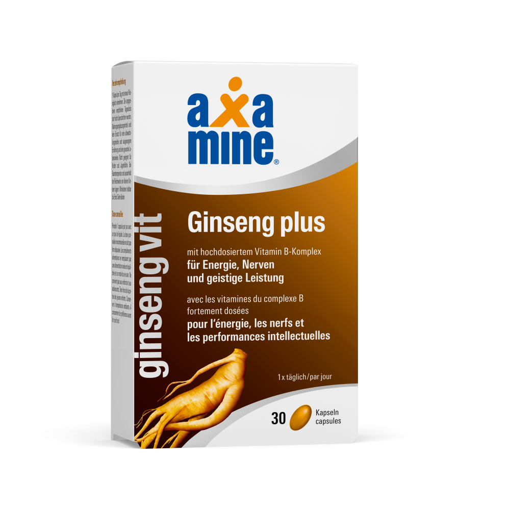 Rapsöl, Panax Ginseng-Extrakt C. A. Meyer 24%, Gelatine, Feuchthaltemittel: Glycerin; Niacin, Zinkgluconat, Pantothensäure, Vitamin B1, Vitamin B2, Vitamin B6, Vitamin B12, Folsäure, Biotin, Stabilisatoren: Siliciumdioxid, Bienenwachs; Emulgator: Soja-Lecithin; Farbstoff: Eisenhydroxide.