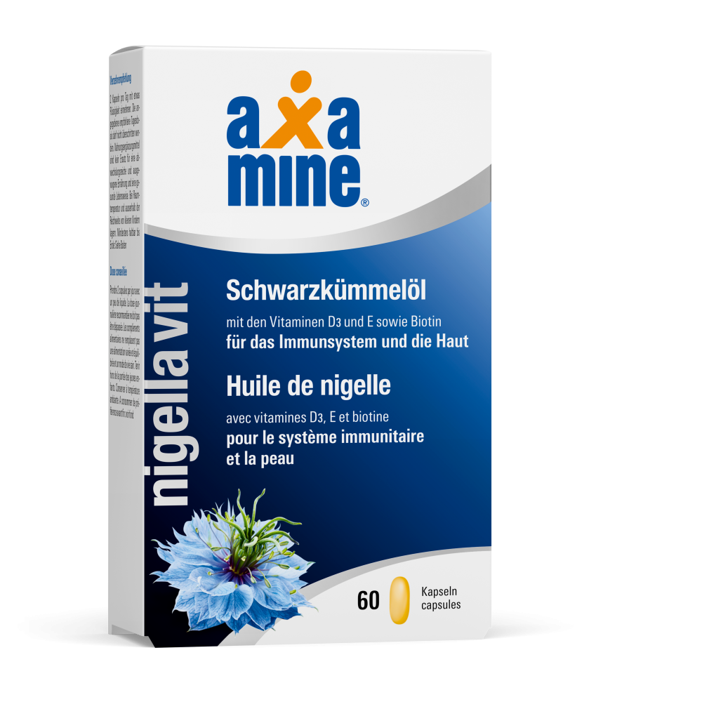 - Schwarzkümmelöl mit den Vitaminen D3 und E sowie Biotin