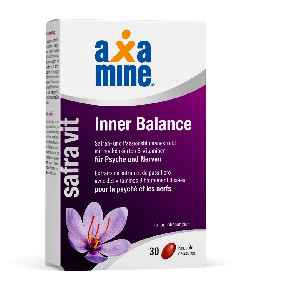 Rapsöl raffiniert, Gelatine, Passionsblumen- Extrakt (13%), Feuchthaltemittel: Glycerin; Niacin, Safran-Extrakt (4%), Zinkbisglycinat, Pantothensäure, Vitamin B1, Vitamin B2, Vitamin B6, Vitamin B12, Folsäure, Vitamin D3, Stabilisatoren: Siliciumdioxid, Bienenwachs; Emulgator: Soja-Lecithin; Farbstoffe: Eisenoxide, Echtes Karmin.