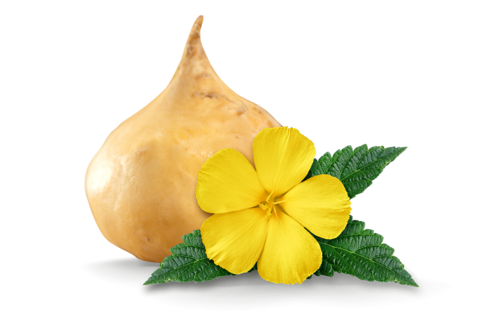 Rapsöl, Maca-Wurzelpulver 24%, Gelatine, Damianablatt-Extrakt 14,8%, Feuchthaltemittel: Glycerin; Vitamin D3, Vitamin B2, Vitamin B6, Vitamin B12, Pantothensäure, Zinkgluconat, Stabilisatoren: Bienenwachs, Siliciumdioxid; Emulgator: Soja-Lecithin; Farbstoff: Eisenhydroxide.